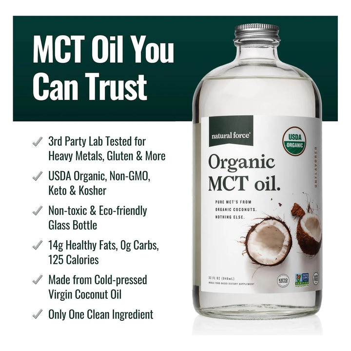Aceite MCT Orgánico Natural Force Prensado En Frío 946 Ml Energía Keto Y Paleo