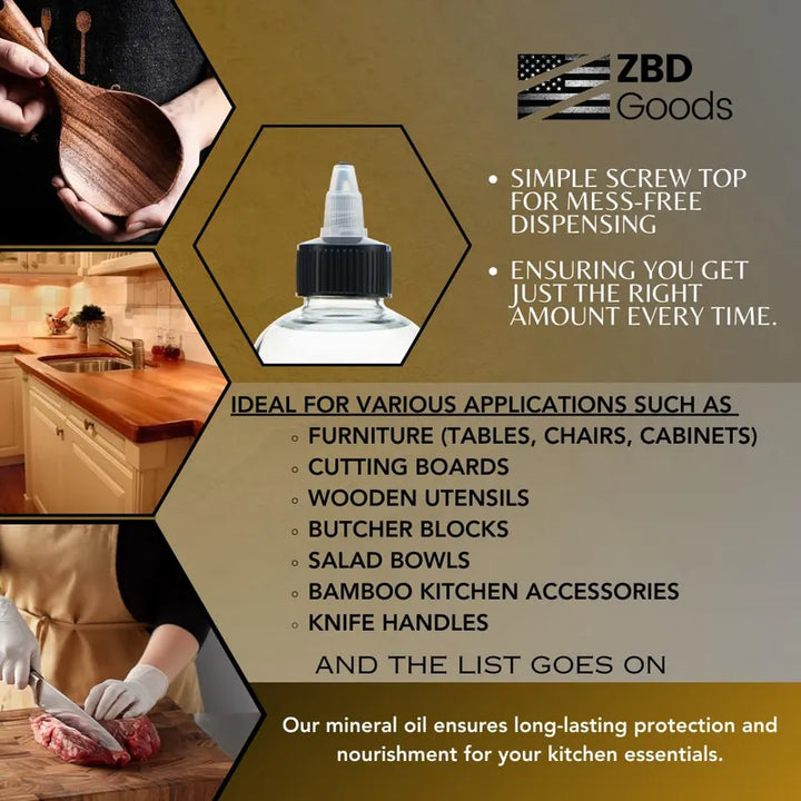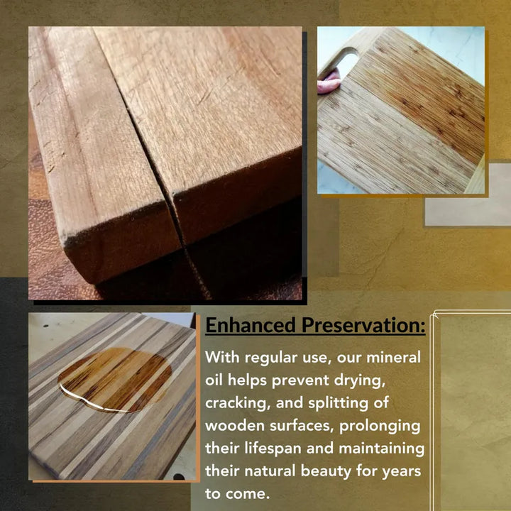 Descubre el Secreto de la Belleza y Protección para tus Superficies de Cocina Este aceite mineral de grado alimenticio es una verdadera joya para los amantes de la cocina que buscan calidad y versatilidad. Ideal para tablas de cortar, bloques de carnicero, encimeras de mármol, acero inoxidable y utensilios de bambú, ofrece una protección superior y resalta la belleza natural de todos tus elementos.