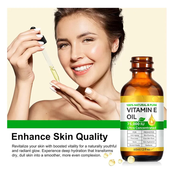 Imagina una piel radiante, hidratada, y llena de vitalidad. Con nuestro Aceite Natural de Vitamina E de 75,000 UI, puedes convertir ese sueño en tu realidad diaria. 🌟