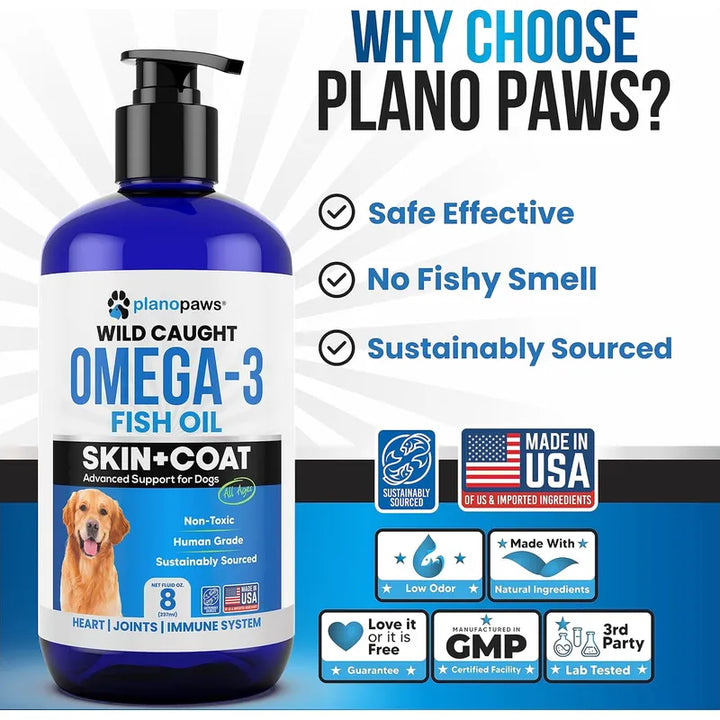 ¿Te preocupa la salud de la piel y el pelaje de tu querido compañero canino? El Aceite de Pescado Omega 3 Plano Paws es tu respuesta perfecta. Más que un simple suplemento, es un aliado esencial que se preocupa por el bienestar integral de tu mascota.