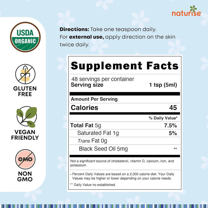 Aceite Organico De Semilla Negra Prensado En Frio 240 Ml Puro Y Natural