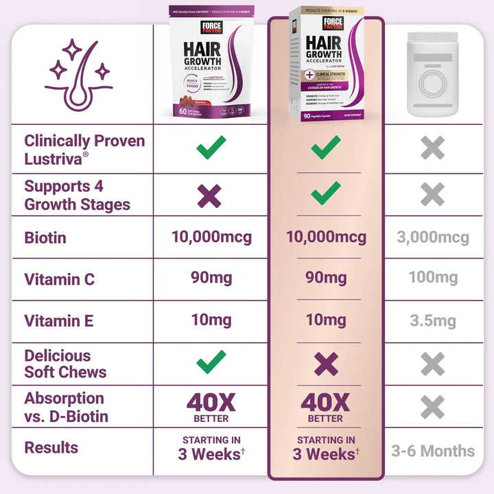 La ciencia ha hablado: Lustriva, el ingrediente estrella de este producto, es una forma superior de biotina y silicio, 40 veces más soluble que la biotina regular. Esto significa que tu cuerpo la absorbe mejor, entregando nutrientes directamente a tus folículos capilares para un crecimiento más rápido y un cabello más resistente desde la raíz. Imagina despertar cada día con mechones más densos, sin preocuparte por la caída o la debilidad.