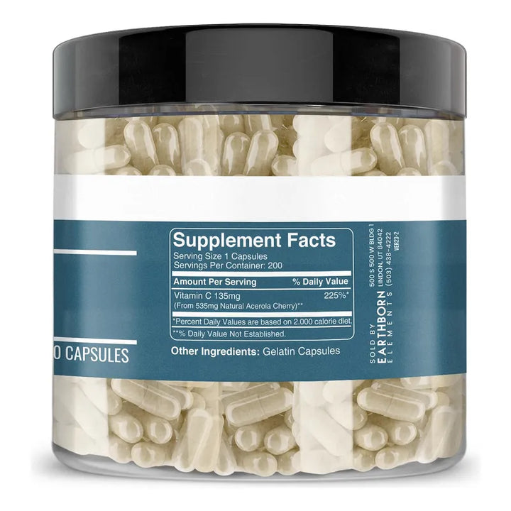 Acerola Cherry 200 Cápsulas Puras Vitamina C Natural Earthborn Elements