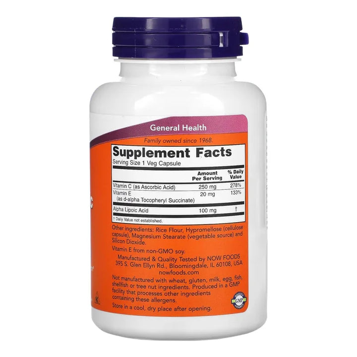 Ácido Alfa Lipoico 100mg Now Foods Antioxidante 120 Cápsulas