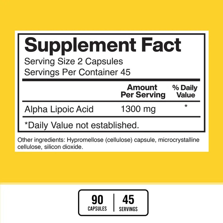 ¿Te has sentido cansado o falto de energía últimamente? Nuestro ácido alfa lipoico está diseñado para llenar ese vacío. Con 1300 mg por porción, puedes estar seguro de que tu cuerpo recibe la dosis adecuada para combatir el estrés oxidativo, ayudando a regenerar tu energía de manera natural. Y no solo eso, sino que al ser vegano, libre de gluten y sin organismos genéticamente modificados, puedes sentirte tranquilo sabiendo que tu elección respeta no solo tu cuerpo, sino también el medio ambiente.