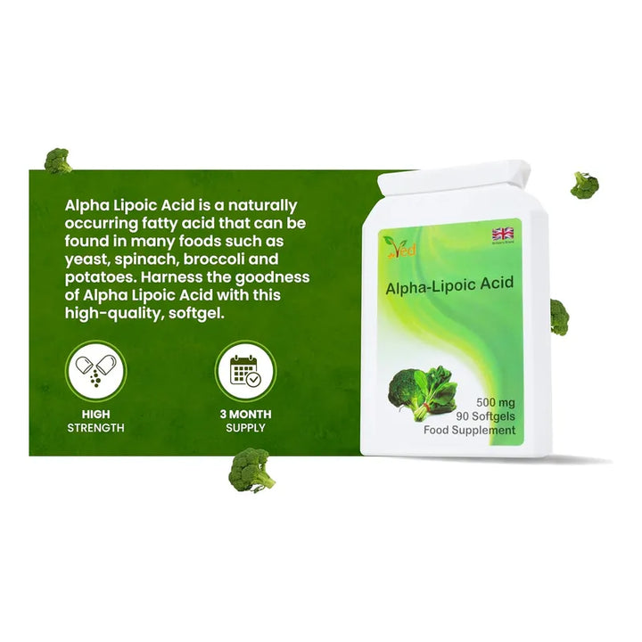 Cada cápsula está diseñada cuidadosamente, ofreciendo un impresionante suministro de 500 mg de ácido alfa-lipoico, un antioxidante natural que ha sido venerado por sus beneficios de salud cruciales. Estas cápsulas son tu aliado perfecto en la búsqueda de un estilo de vida saludable. Experimenta el incremento en tu energía y revitalización que solo los mejores productos pueden ofrecer.