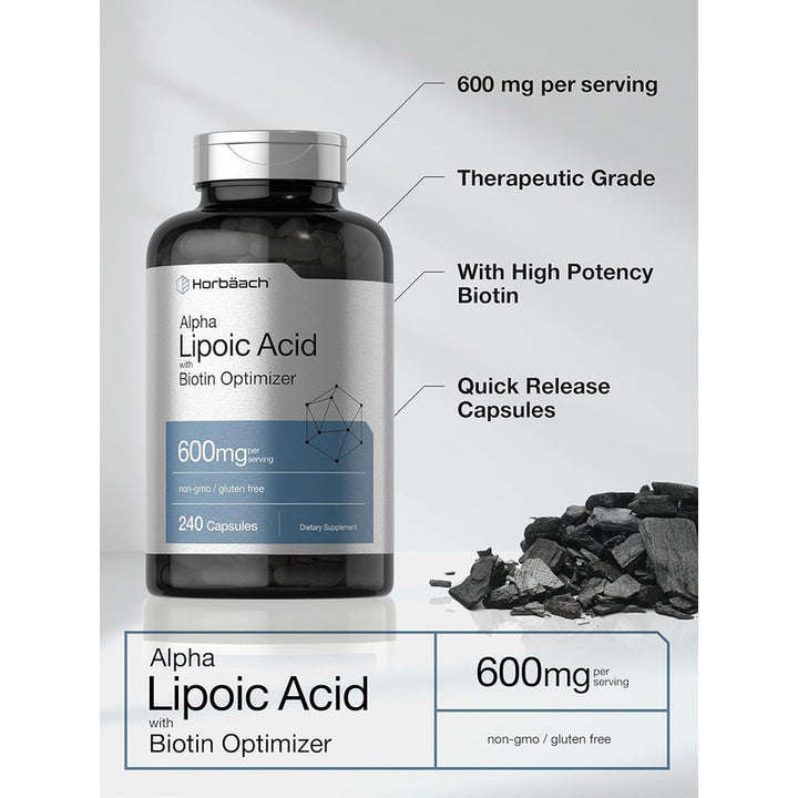 Ácido Alfa Lipoico 600 Mg Con Biotina Suplemento Antioxidante