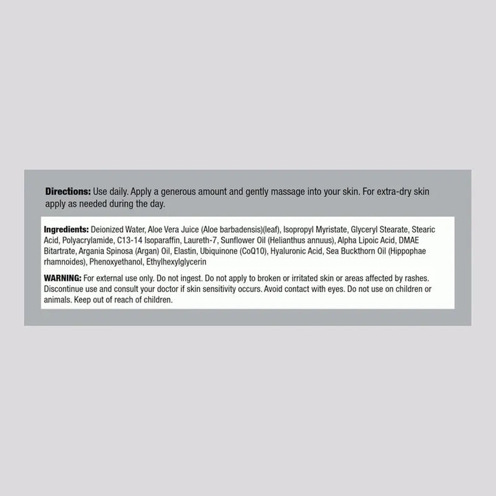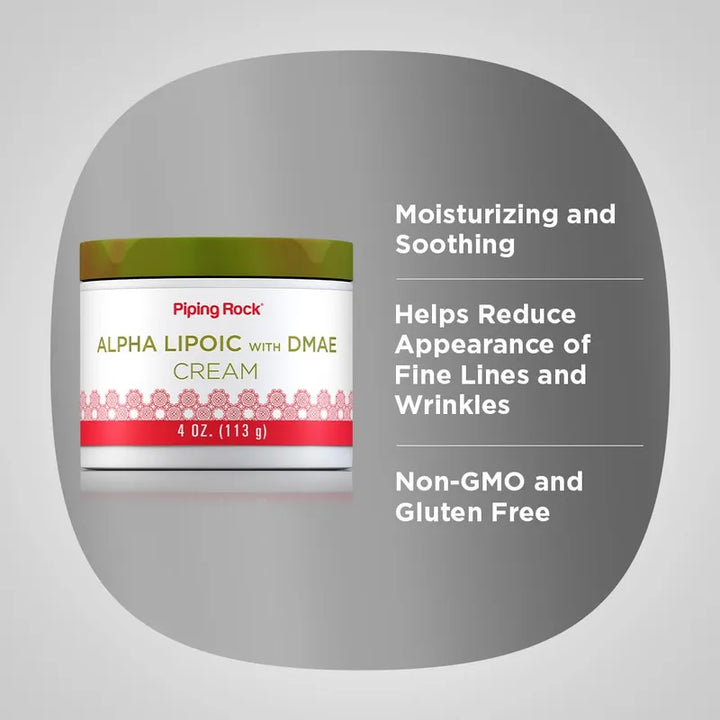 La combinación única del Ácido Alfa Lipoico con crema DMAE actúa como un potente agente antioxidante que protege y revitaliza tu piel desde las capas más profundas. Al aplicar la crema, los ingredientes son absorbidos rápidamente, trabajando para reducir la apariencia de líneas y arrugas mientras mejoran la elasticidad y firmeza de tu piel.