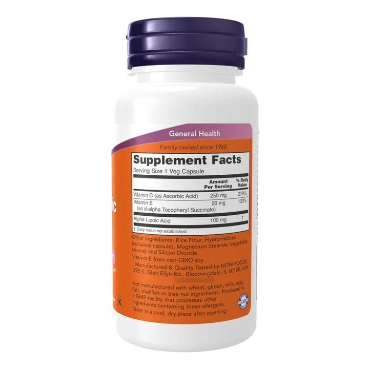 Acido Alfa Lipoico Now 100 Mg Vitaminas C Y E Potente Antioxidante