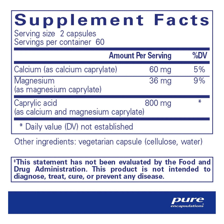 Ácido Caprílico Pure Encapsulations 120 Cápsulas Salud Intestinal Digestión Óptima