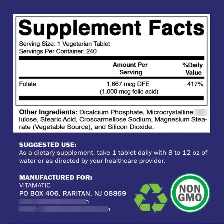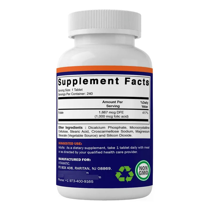 Acido Folico 1000 Mcg Tabletas Vegetarianas 240 Unidades Vitamina B9