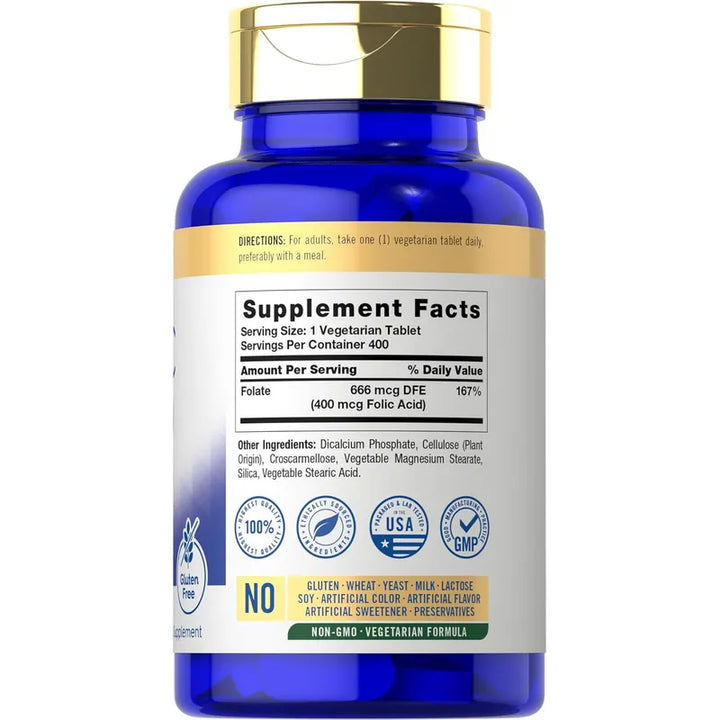 Ácido Fólico 400 Mcg Carlyle 400 Tabletas Sin Gluten