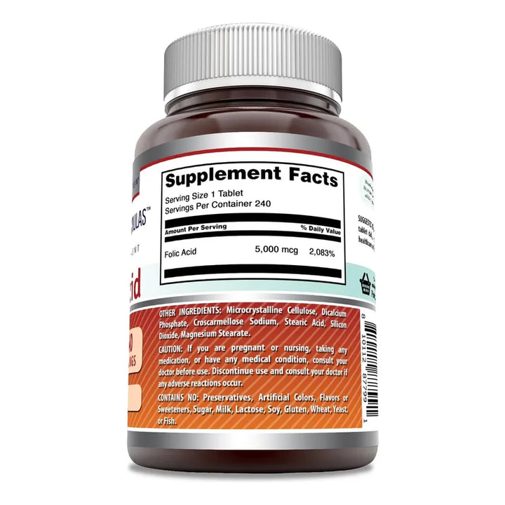 Acido Folico 5000 Mcg 240 Tabletas Calidad Americana GMP