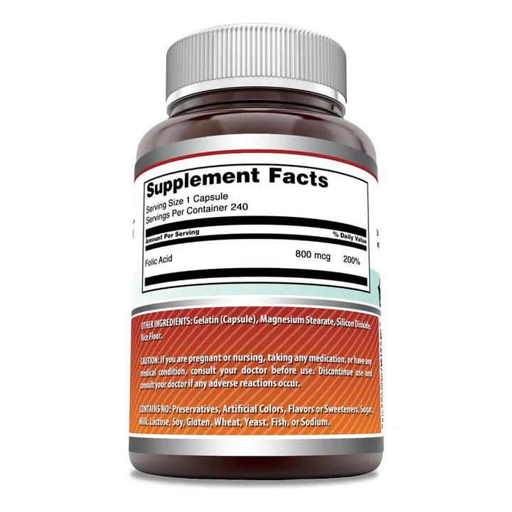 Descubre el poder del Ácido Fólico 800 Mcg – 240 Cápsulas