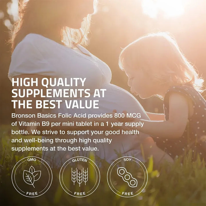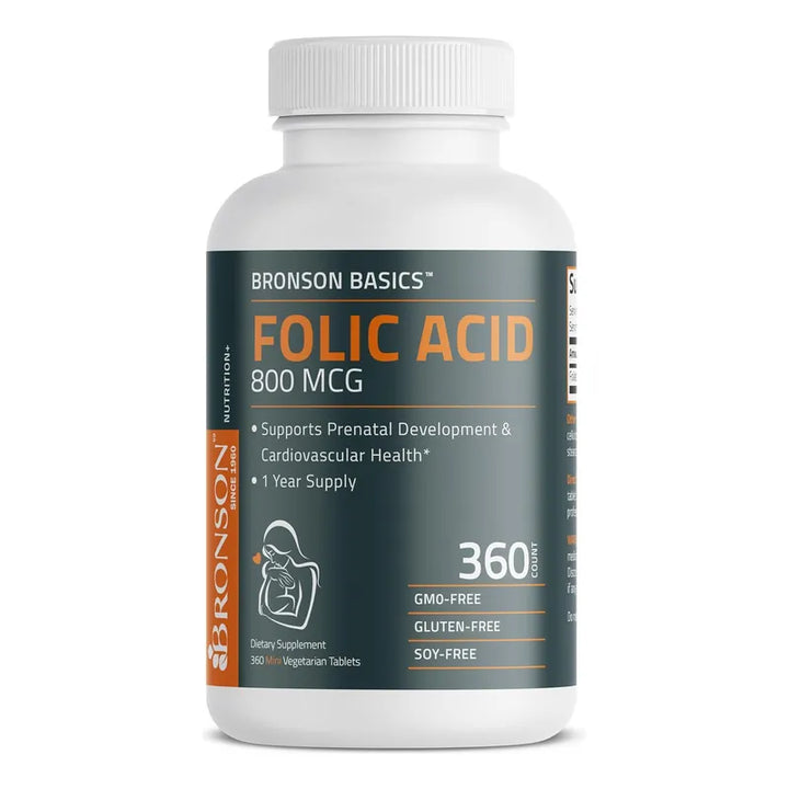 Imagina un suplemento que no solo te apoya durante el embarazo, sino que también te garantiza tranquilidad al saber que estás consumiendo un producto de calidad, respaldado con años de experiencia. El Ácido Fólico 800 MCG de Bronson te ofrece exactamente eso.