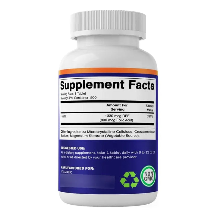 Acido Folico 800mcg 500 Tabletas Vitamina B9 Salud Prenatal