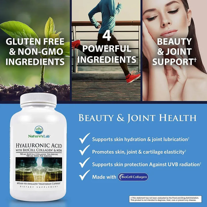 Acido Hialuronico Con Colageno Biocell Y Msm Natures Lab 60 Capsulas