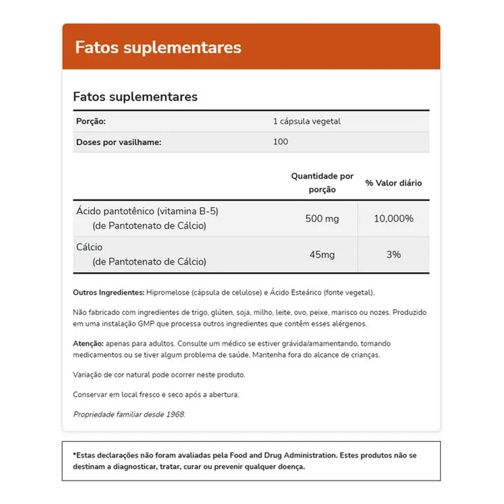 - 500 mg de puro ácido pantoténico por cápsula 🤞