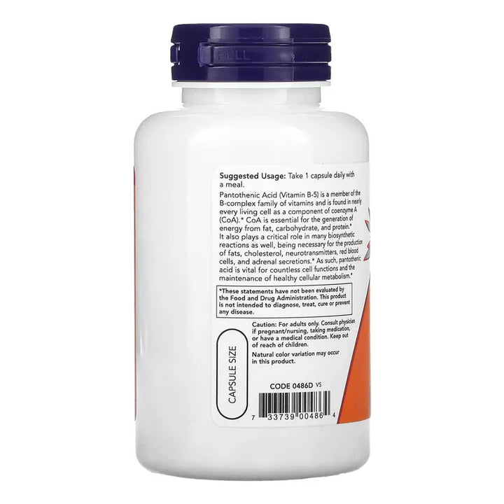 Ácido Pantoténico 500 Mg 100 Cápsulas Naturales Energía Vitamina B5