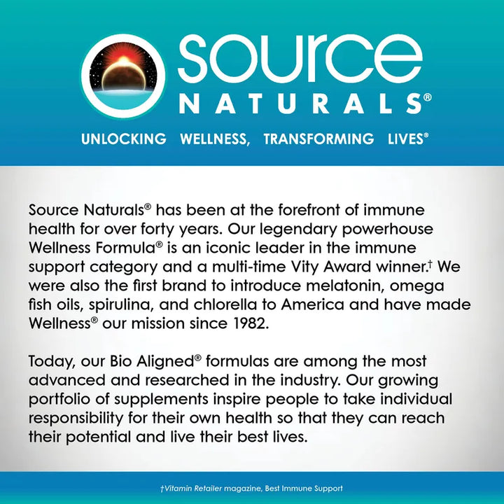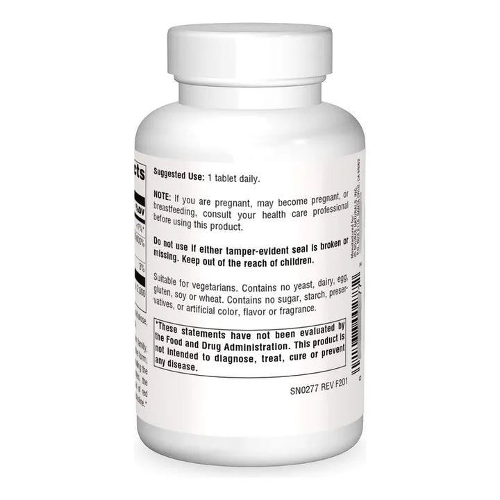 Este producto está pensado para brindarte una experiencia libre de preocupaciones; cada tableta está adaptada para vegetarianos y sin alérgenos comunes, como gluten o soja. La confianza y experiencia de Source Naturals te respaldan.