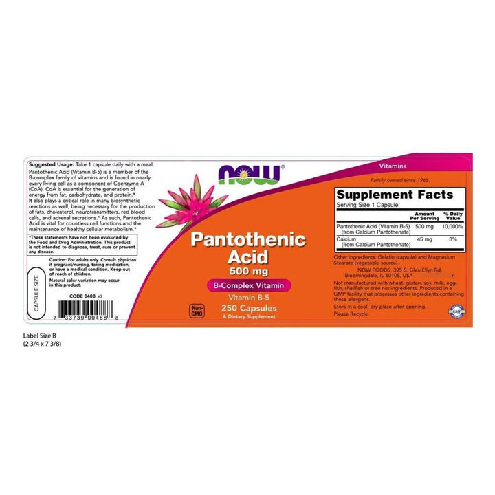 Imagina despertar cada día con la vitalidad que necesitas para enfrentar tus desafíos. El Ácido Pantoténico no solo es un suplemento, es tu compañero diario para una vida más activa y saludable. Forma parte de la familia de vitaminas del complejo B, conocidas por su papel crucial en el metabolismo celular. Con 250 cápsulas en cada paquete, tendrás suficiente para meses de apoyo nutricional continuo.