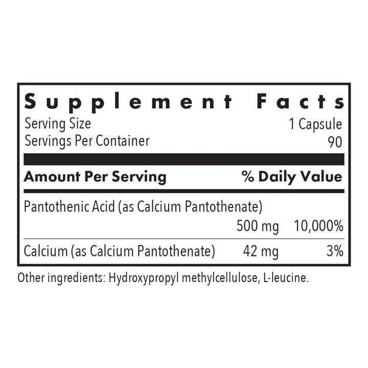 Ácido Pantoténico 500mg 90 Cápsulas Energía Metabolismo Vitamina B5