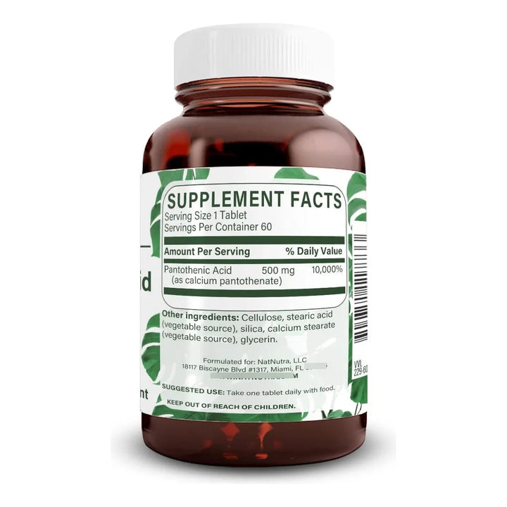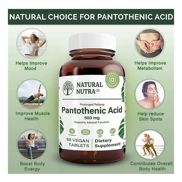 Ácido Pantoténico De Liberación Prolongada 500 Mg Suplemento Vitamina B5 Energía Metabolismo