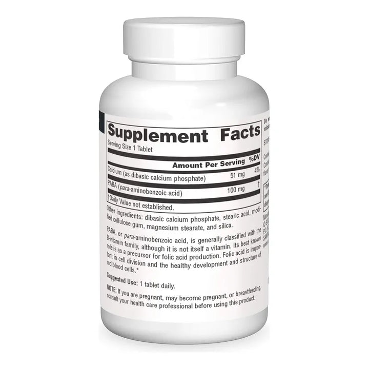 Acido Paraaminobenzoico 100mg 100 Tabletas Source Naturals Suplemento Natural Puro