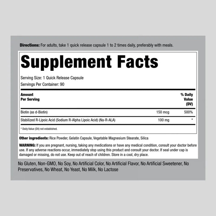 Acido R Alfa Lipoico Estabilizado 100 Mg 90 Capsulas Suplemento Saludable