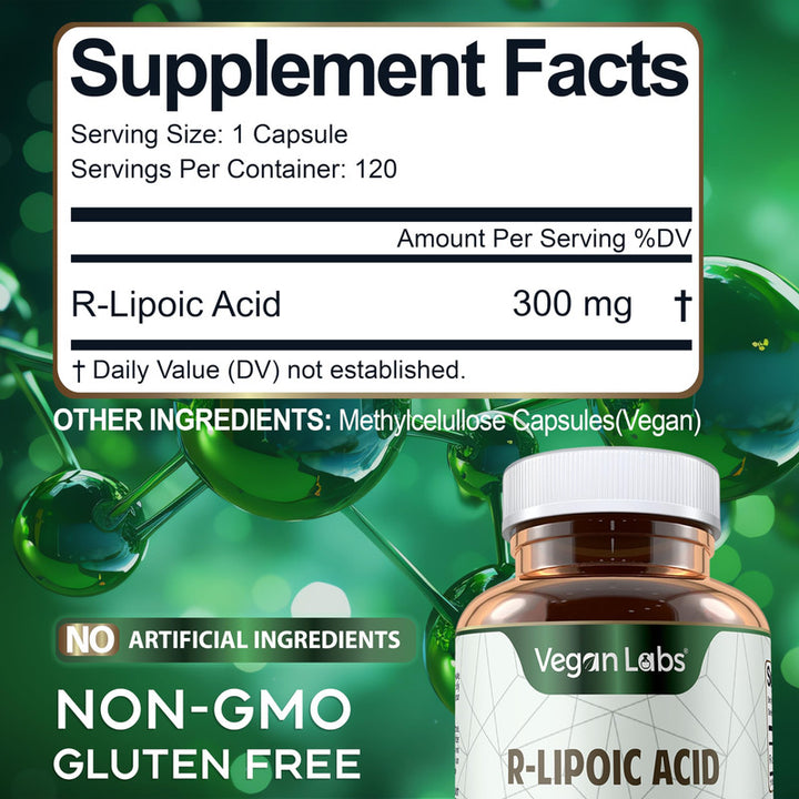 Acido R-Lipoico 300mg 120 Capsulas Veganas Energia Celular Proteccion Antioxidante
