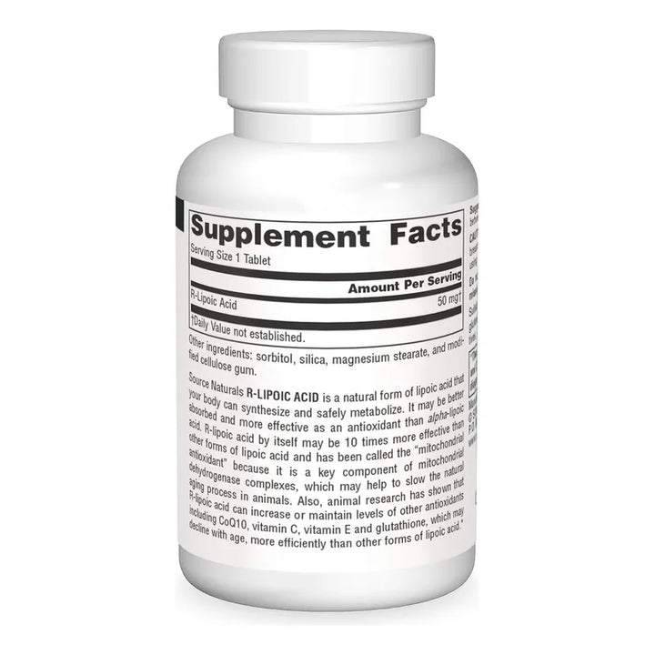 Ácido R Lipoico 50 Mg 60 Tabletas Source Naturals Energía Antioxidante