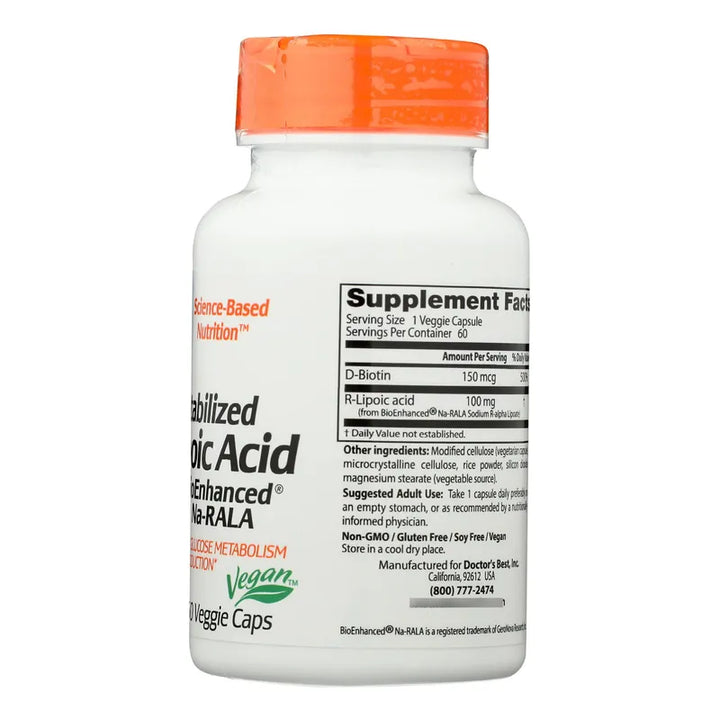 Acido R-Lipoico Na-Rala Estabilizado Anti-Oxidante Potente 60 Capsulas