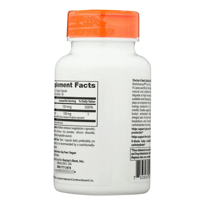¿Qué hace que nuestro ácido R-lipoico sea tan especial? Su fórmula estabilizada con Na-RALA (R-Ácido Lipoico de Sodio BioMejorado) optimiza la absorción y eficacia. Esto significa que recibirás todos los beneficios antioxidantes que tu cuerpo necesita, en su forma más pura y potente.