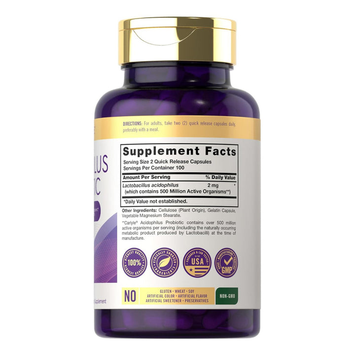 Acidophilus Probiótico 500 Millones Cfu Carlie Suplemento Lactobacillus Sin Gluten