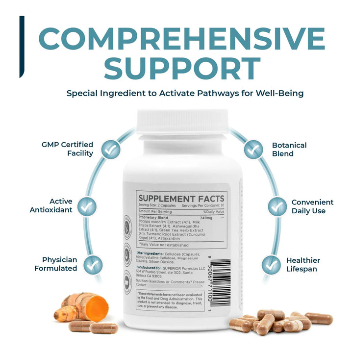 - Ingredientes naturales: Ashwagandha, Astaxantina, Bacopa y más, cuidadosamente seleccionados. 🌱