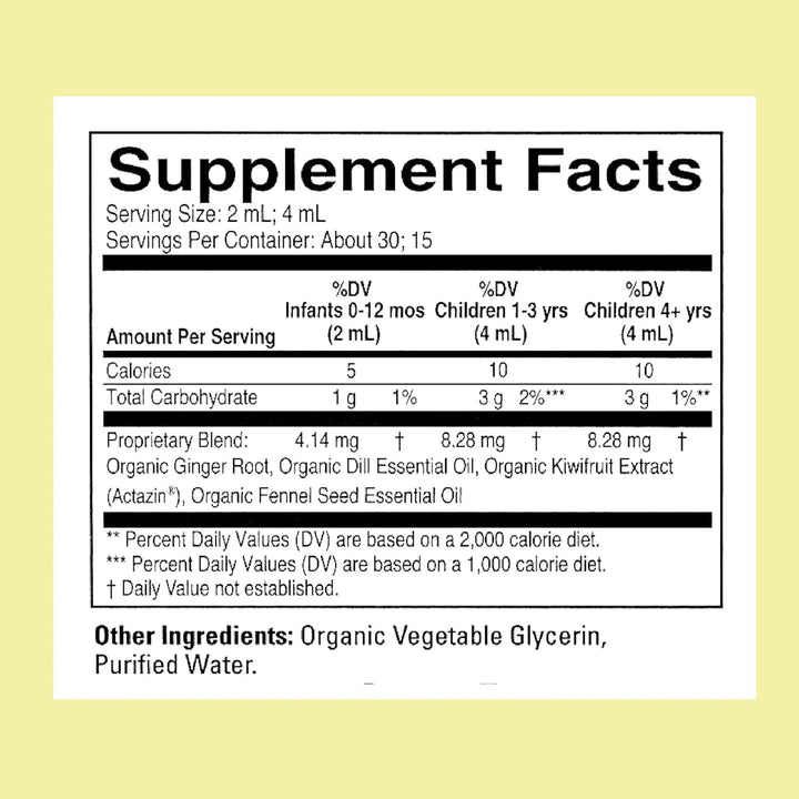 Imagina poder calmar a tu bebé en minutos, permitiéndole descansar plácidamente y disfrutar de su crecimiento sin dolor. Nuestra fórmula única combina jengibre e hinojo orgánicos, conocidos por sus propiedades digestivas, junto con extracto de kiwi de Nueva Zelanda (Actazin) para apoyar la regularidad intestinal. Cada gota está pensada para brindar alivio rápido y duradero, mientras tú recuperas la tranquilidad de ver a tu hijo feliz.