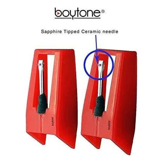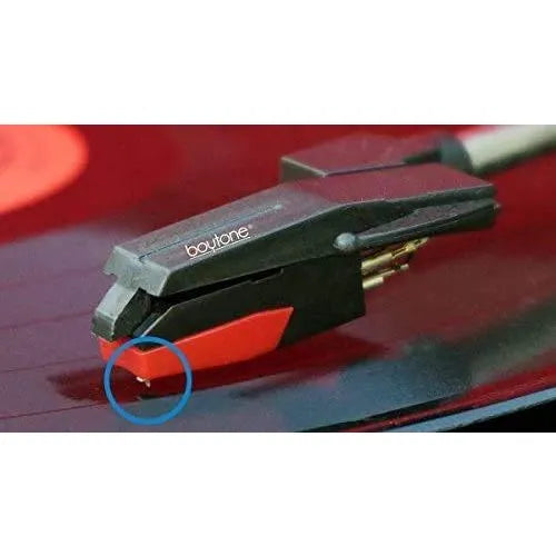 - 🔴 Punta de zafiro: Material premium que reduce el desgaste y mejora la fidelidad del sonido.