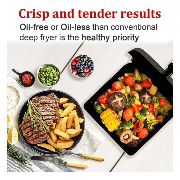 - Comidas más saludables: 🍏 Disfruta de tus alimentos favoritos con 85% menos de aceite.