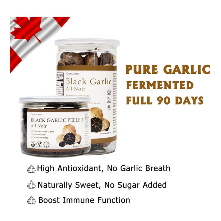 ¿Estás cansado de ingredientes comunes que no aportan ese toque especial a tus comidas? Nuestro ajo negro, fermentado durante 90 días, es la respuesta a tus deseos culinarios más exigentes. Proveniente de las regiones más fértiles de Alberta, Canadá, cada diente de ajo es cuidadosamente seleccionado y procesado para preservar su pureza natural y sus propiedades nutritivas extraordinarias.