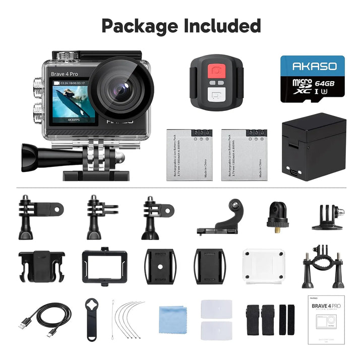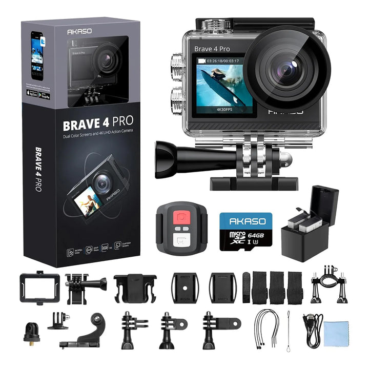 Akaso Brave 4 Pro Cámara Acción 4K30FPS Impermeable 131 Pies Con MicroSD 64GB