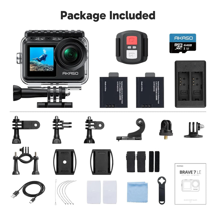 Akaso Brave 7 LE Cámara De Acción 4K30fps Resistente Al Agua Con Pantalla Doble Y Accesorios