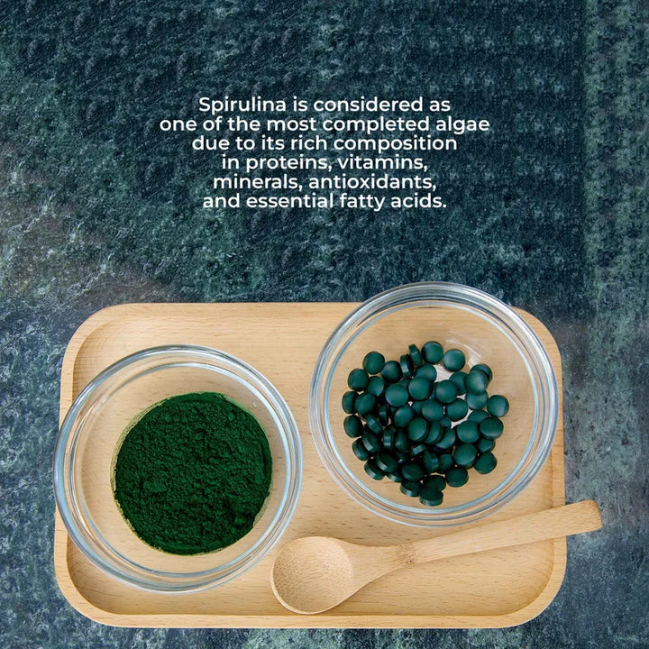 La espirulina actúa como un potente antioxidante y un impulsor de energía natural. Sus nutrientes trabajan en conjunto para revitalizar tu cuerpo, fortalecer tus defensas y eliminar toxinas, asegurando que tu organismo funcione al máximo.