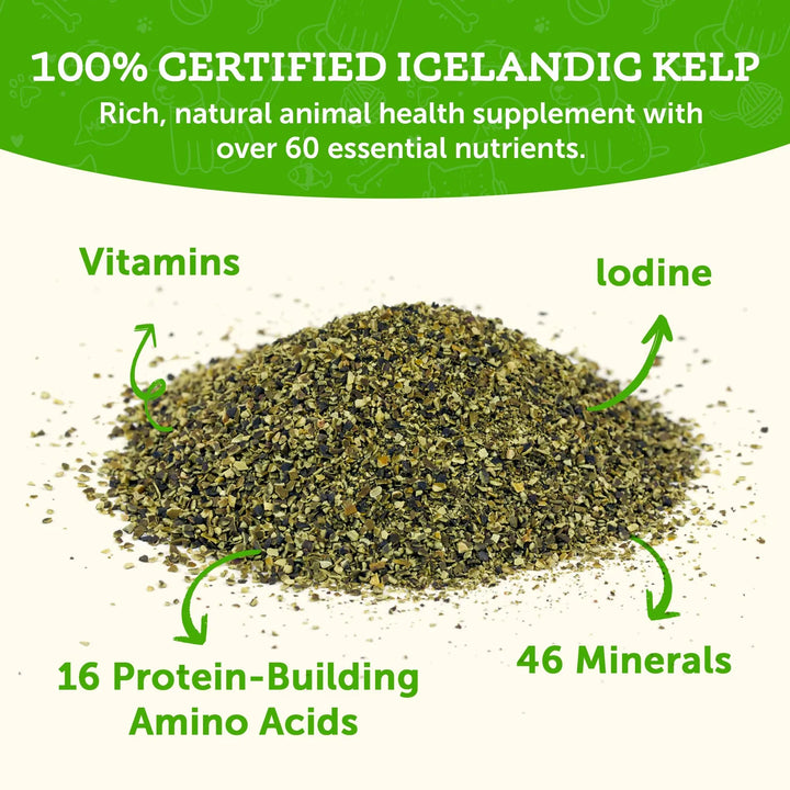 El yodo en las algas estimula la producción hormonal tiroidea, equilibrando el metabolismo de tu mascota. Los minerales traza (como zinc y selenio) potencian su efecto, mientras las vitaminas A y E nutren su piel y pelaje. Es un círculo virtuoso: mejor tiroides = más energía = mascota feliz.