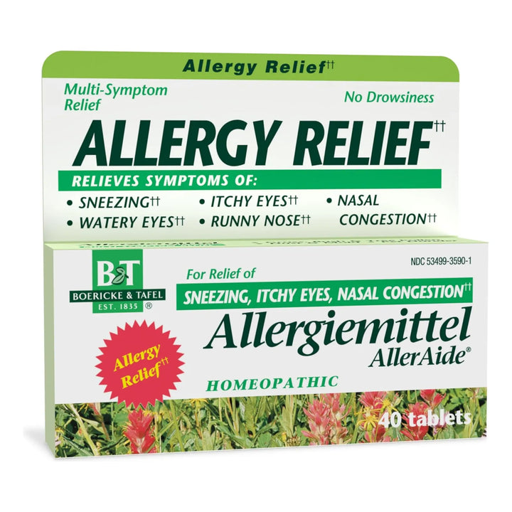 ¿Estás cansado de los molestos síntomas de alergia que arruinan tu día? Estornudos constantes, picazón en los ojos y congestión nasal pueden hacerte sentir agotado. Imagina un alivio rápido y natural, sin los efectos secundarios de los medicamentos tradicionales. Con Nature's Way Boericke & Tafel Allergiemittel AllerAide, puedes decir adiós a las alergias y disfrutar de cada momento sin preocupaciones.