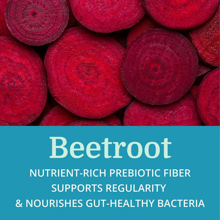 - Enriquecido con remolacha, un superalimento prebiótico que nutre tu microbiota. 🍠