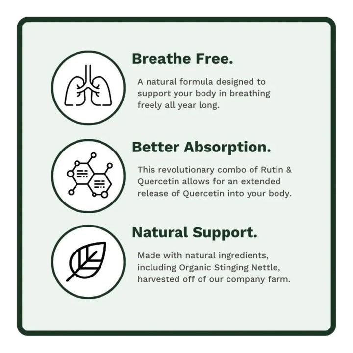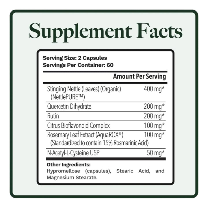 Allurtica combina la quercetina, un bioflavonoide conocido por sus propiedades antioxidantes, con la ortiga, una hierba tradicionalmente usada para apoyar la respuesta inflamatoria del cuerpo. Juntos, estos ingredientes ayudan a modular la liberación de histamina, reduciendo así las molestias estacionales. La rutina y el romero añaden un refuerzo adicional, creando un efecto sinérgico que empodera tu sistema inmunológico.
