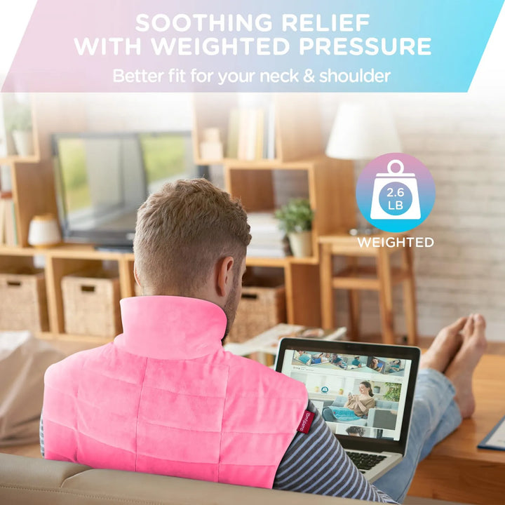 Con un peso equilibrado de 2.6 libras y rellena de cuentas de microvidrio, esta almohadilla se adapta perfectamente a las curvas de tu cuerpo. Ya sea para aliviar la tensión muscular después del gimnasio, esos calambres menstruales que arruinan tu día o simplemente para disfrutar de un momento de relax, su diseño ergonómico ofrece una cobertura superior en cuello, hombros y espalda.