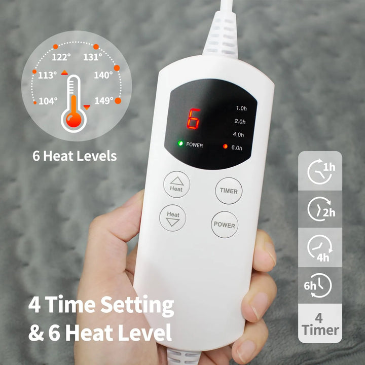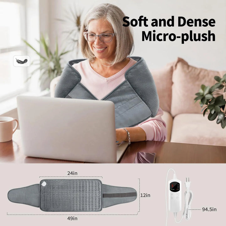 Con 6 niveles de calor personalizables, desde un suave 104°F hasta un intenso 149°F, y 4 temporizadores (1H a 6H), tienes el control total para adaptarlo a tus necesidades. ¿Lo mejor? Su microfelpa ultra suave y su diseño envolvente se ajustan como una segunda piel, sin resbalarse, para que puedas moverte con libertad mientras recibes alivio continuo. Ideal para usar en el sofá, la cama o incluso en tu espacio de trabajo.
