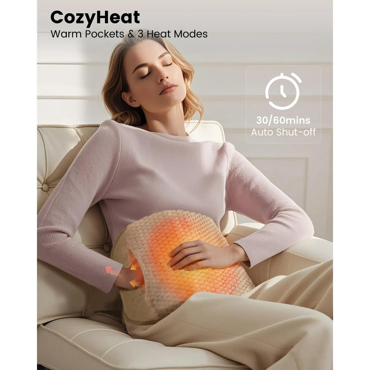 Almohadilla Termica Extragrande 61 Pulgadas Con Masaje Vibratorio Y Bolsillos Calientes Para Manos Alivio Profesional En Casa