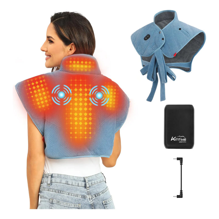Almohadilla Termica Portatil Con Masajeador 3 Modos Calor 4 Zonas Bateria Larga Duracion